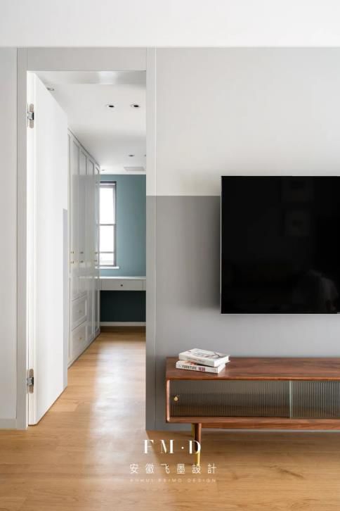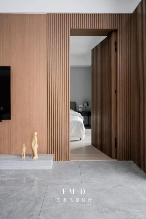 一般情況下,推拉門的門有一半是露在外面的。如果不希望門暴露在外,可以考慮嵌入式設計: