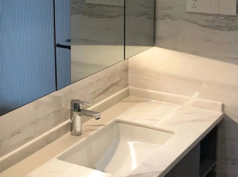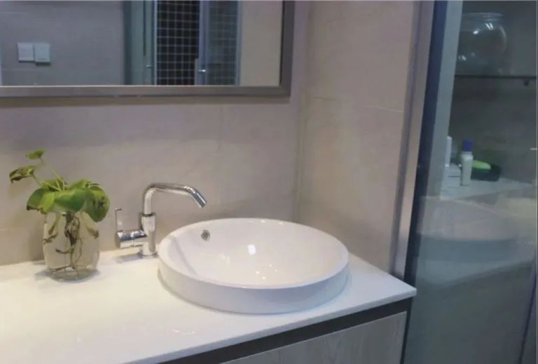 裝修時(shí)選擇懸浮式浴室柜,可以大大避免灰塵、霉菌的堆積。同時(shí)最好安裝臺(tái)下盆,臺(tái)盆與臺(tái)面無(wú)縫對(duì)接,沒有衛(wèi)生死角,不易堆積水垢、霉菌。