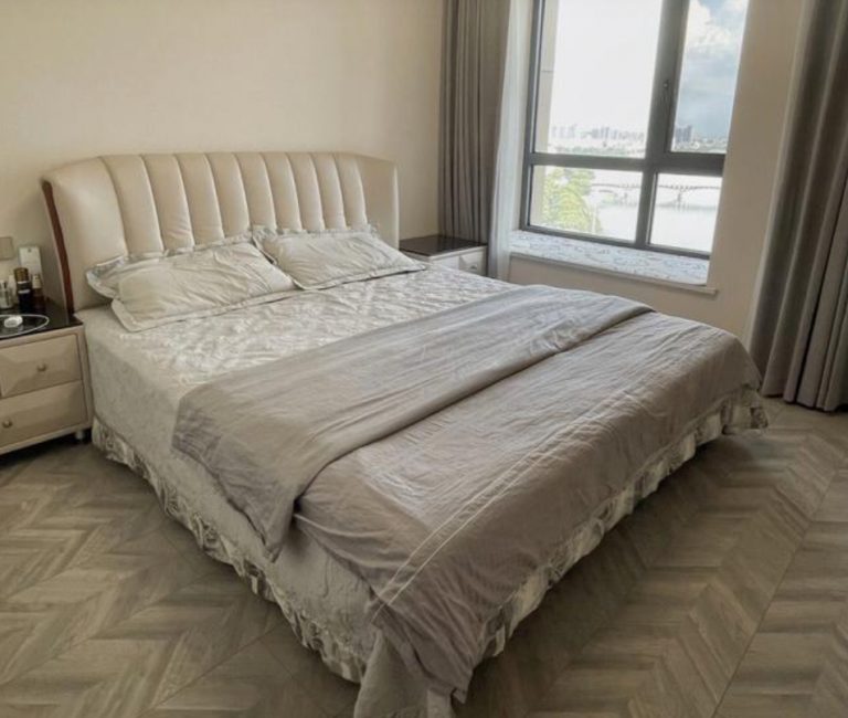 主臥空間還是比較寬敞的,而且床的款式也比較讓人喜歡,搭配的床上用品,看著簡單,但是很精致呀。飄窗沒辦法打掉,可以當(dāng)小沙發(fā)使用,坐著玩手機(jī),也覺得很舒服呢。全屋安裝了中央空調(diào),頂面吊頂是不可缺少的一部分。